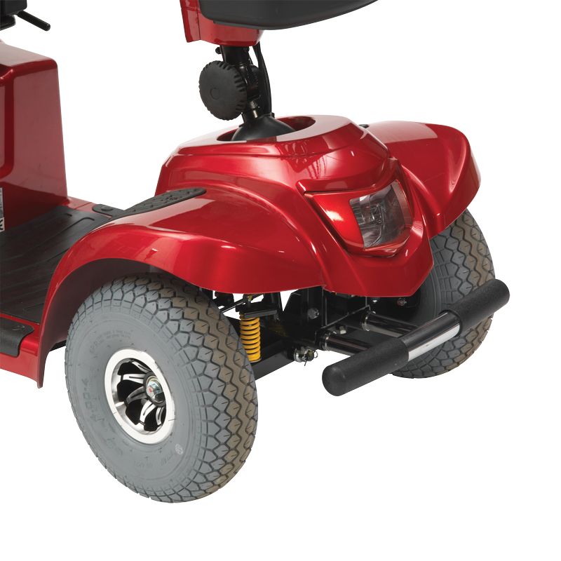 - Ruedas con neumáticos macizos de 32 cm de diámetro y una gran distancia al suelo de 10 cm.