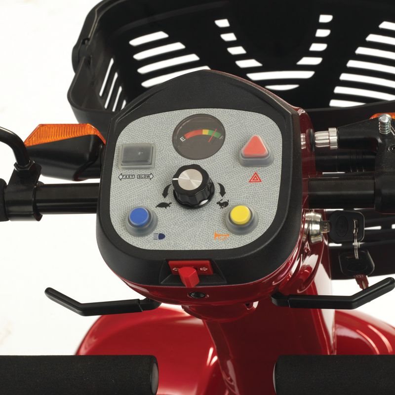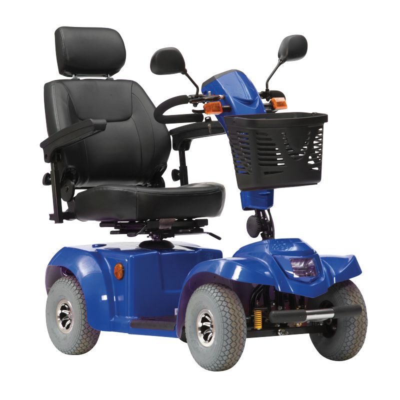 - Para facilitar los traslados, la silla es giratoria y translativa en 360°. También está equipado con un cómodo manillar de dos niveles, una gran cesta extraíble, un práctico bolsillo en la parte trasera del respaldo y 2 espejos.